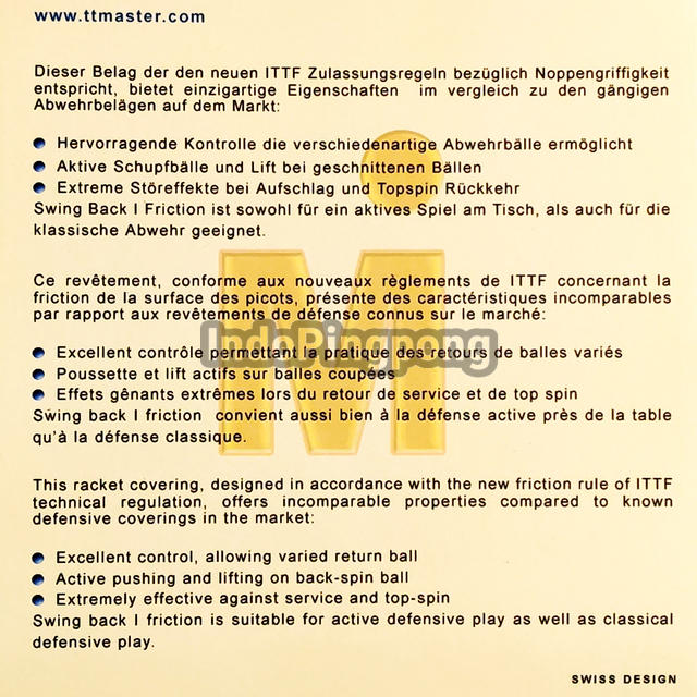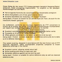 Swing back I friction is suitable for active defensive play as well as classical defensive play.