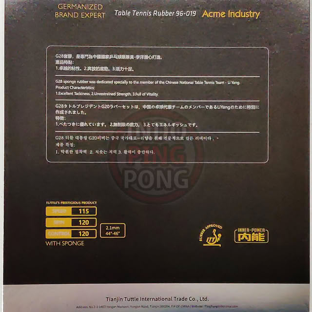 G28 sponge rubber was dedicated specially to the member of the Chinese National Table Tennis Team – Li Yang.