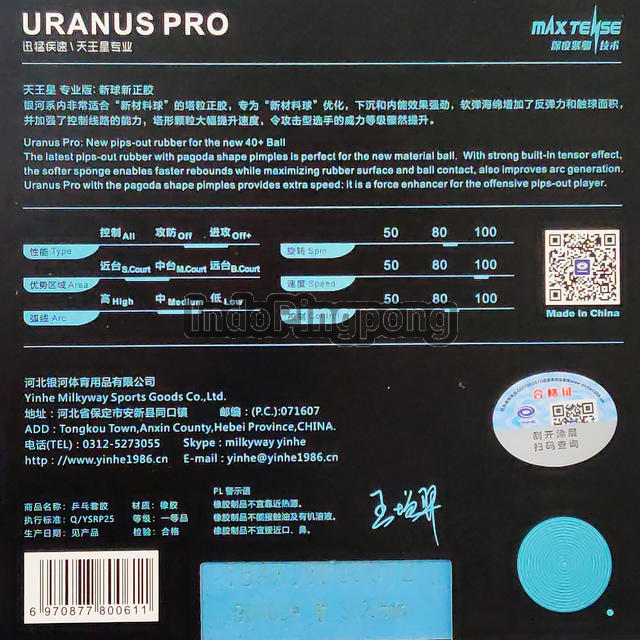 Uranus Pro: New pips-out rubber for the new 40+ Ball